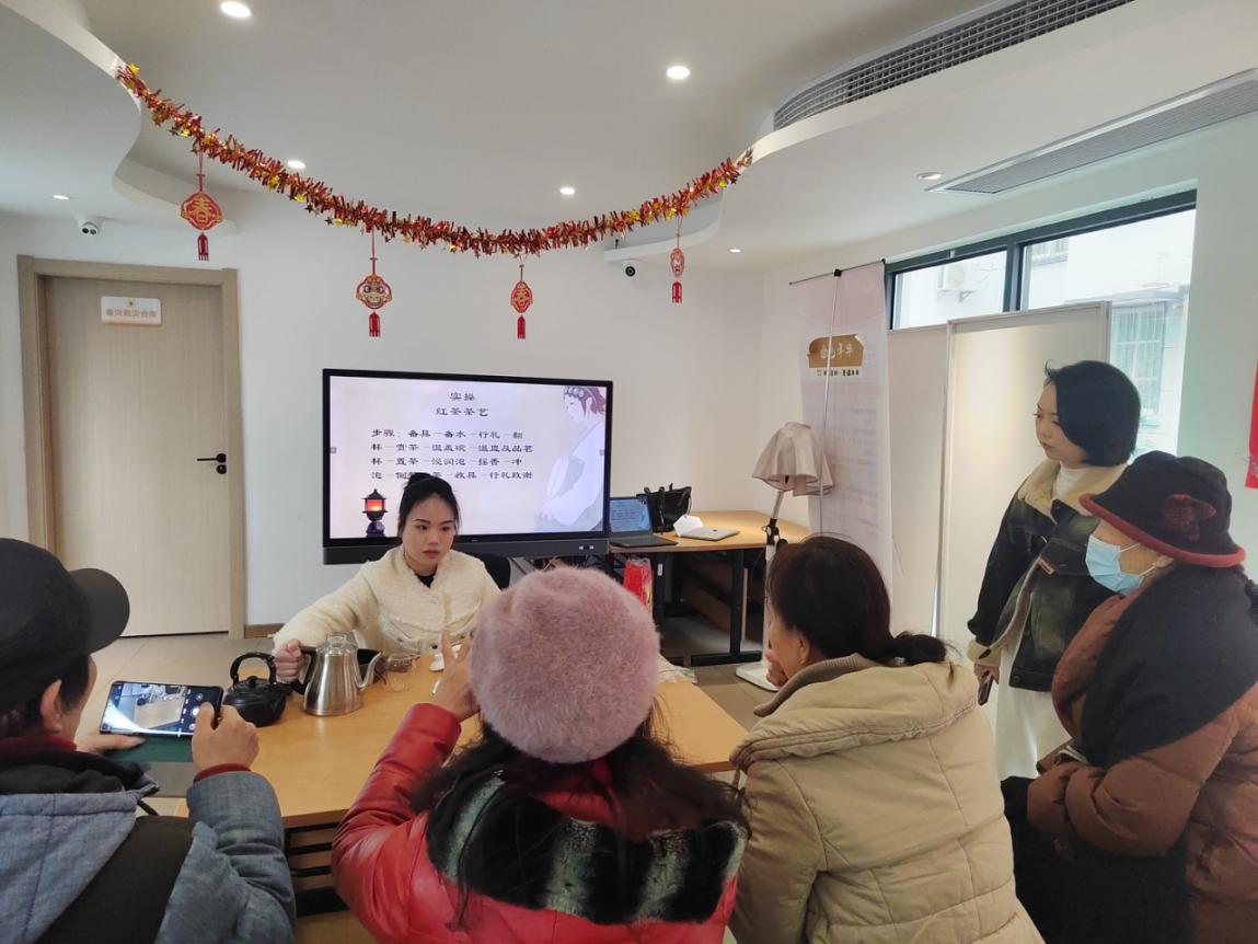 活動(dòng)伊始,所巷社區黨委副書(shū)記朱明靜向大家介紹了舉辦此次活動(dòng)的目的意義,希望通過(guò)開(kāi)展此類(lèi)活動(dòng)進(jìn)一步增強社區人員對茶文化的了解,感受茶文化的獨特魅力和蘊含在茶藝中的文化內涵,更好地樹(shù)立文化自信,同時(shí)通過(guò)了解當前茶資源精深加工的發(fā)展現狀,感受科技創(chuàng )新對推動(dòng)茶產(chǎn)業(yè)高質(zhì)量發(fā)展的重要性。